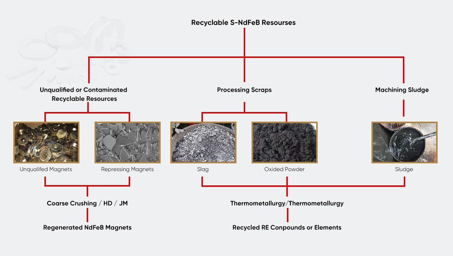 | Magnetic Mud Recycling Ang magnetic mud na ginawa ng magnetic material grinding process ay ginagamit upang kunin ang mga rare-earth na elemento sa pamamagitan ng isang espesyal na proseso, at ang natitirang bakal na pulbos ay maaaring gamitin bilang isang metallurgical na hilaw na materyal, na nakakamit ng isang waste resource utilization rate na higit sa 90%. | Waste Cutting Fluid Treatment Ultrafiltration membrane separation advanced oxidation combined technology ay ginagamit upang paghiwalayin ang langis at tubig sa waste cutting fluid. Ang kalidad ng naprosesong tubig ay nakakatugon sa GB 8978-1996 1st level emission standard, at ang oil phase ay maaaring pinuhin at magamit muli. | Sistema sa Pagre-recycle ng Waste Mould Magtatag ng isang sistema ng pamamahala ng full life cycle ng amag upang magsagawa ng pag-aayos ng laser cladding o pagbabagong-buhay ng powder metallurgy sa mga na-scrap na carbide molds, na nagpapataas ng rate ng pag-recycle ng materyal ng amag sa higit sa 60%. |