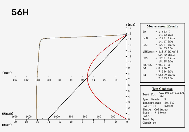 | Hindi. | Grade | Sinabi ni Br | Hcj | Hcj | (BH)max | Pinakamataas na Temperatura sa Paggawa ℃ | ||||
